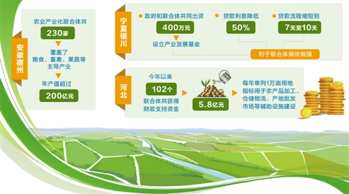 河北省农业厅副厅长吴更雨说,河北聚集要素支撑,合力驱动联合体发展。一是财政支持。省农业产业化专项资金和各级各类涉农财政支持资金重点向联合体倾斜,对联合体内的项目建设给予重点支持。今年以来,102个联合体共获得财政支持资金5.8亿元。二是用地支持。在符合规划和用途管制的前提下,支持联合体合理用地需求。每年单列1万亩用地指标用于农产品加工、仓储物流、产地批发市场等辅助设施建设用地。